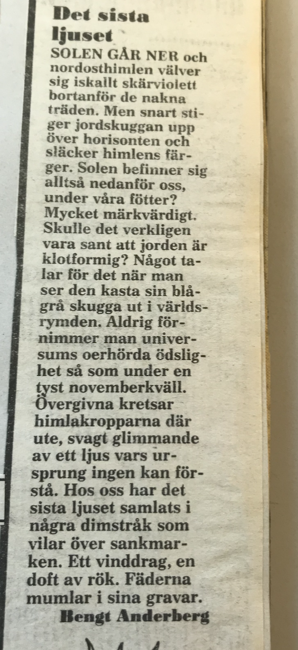 Läs denna höstfundering av Bengt Anderberg publicerad i Expressen i november 1989. Klicka på bilden så blir den större och lättare att läsa.